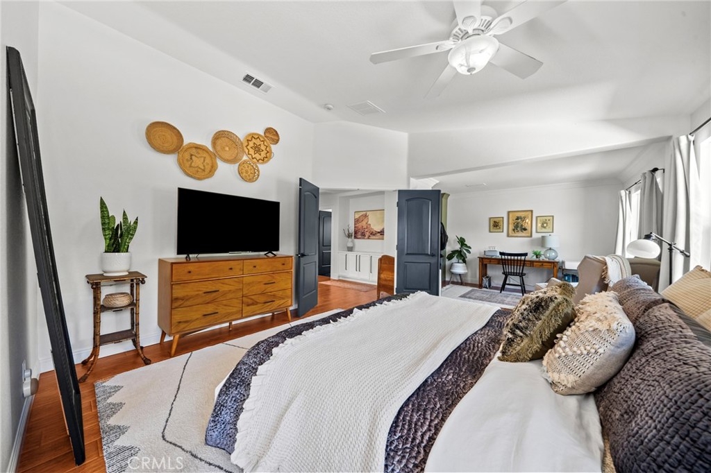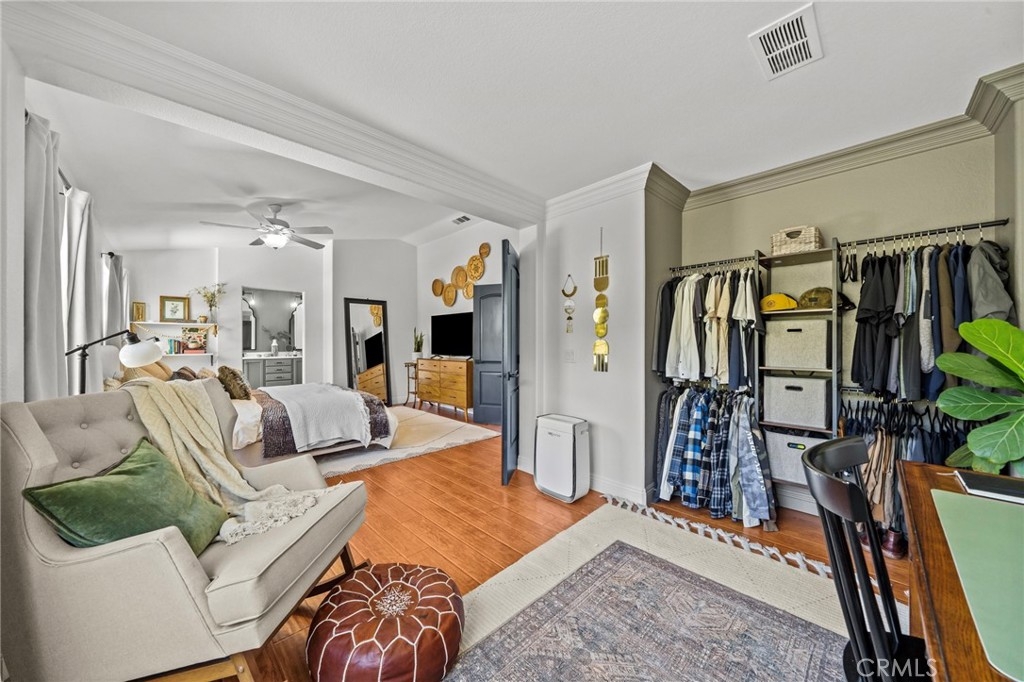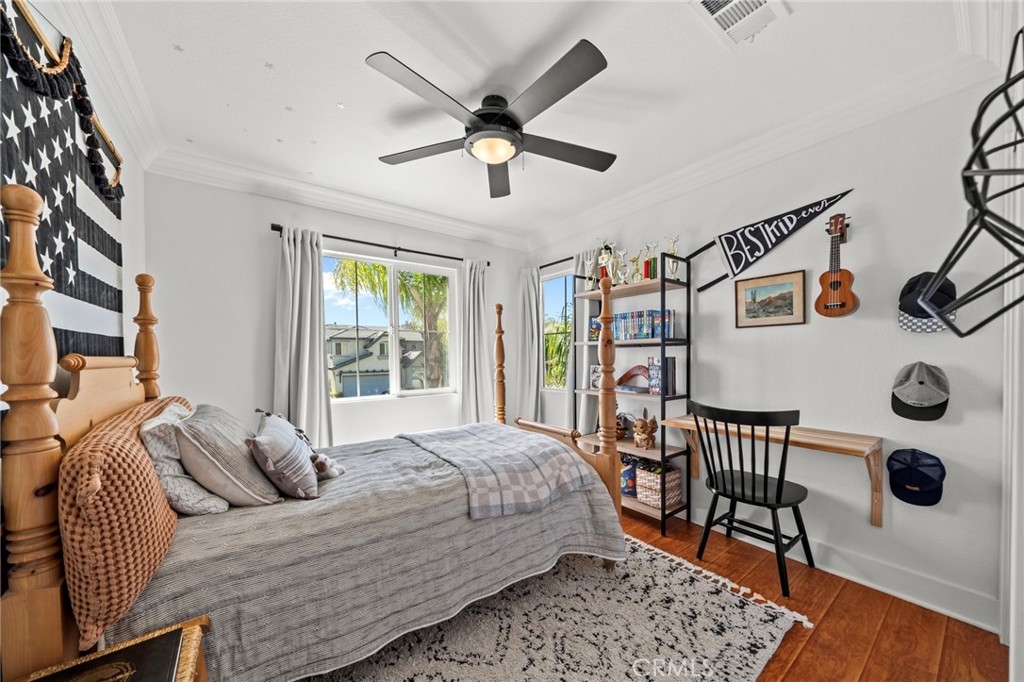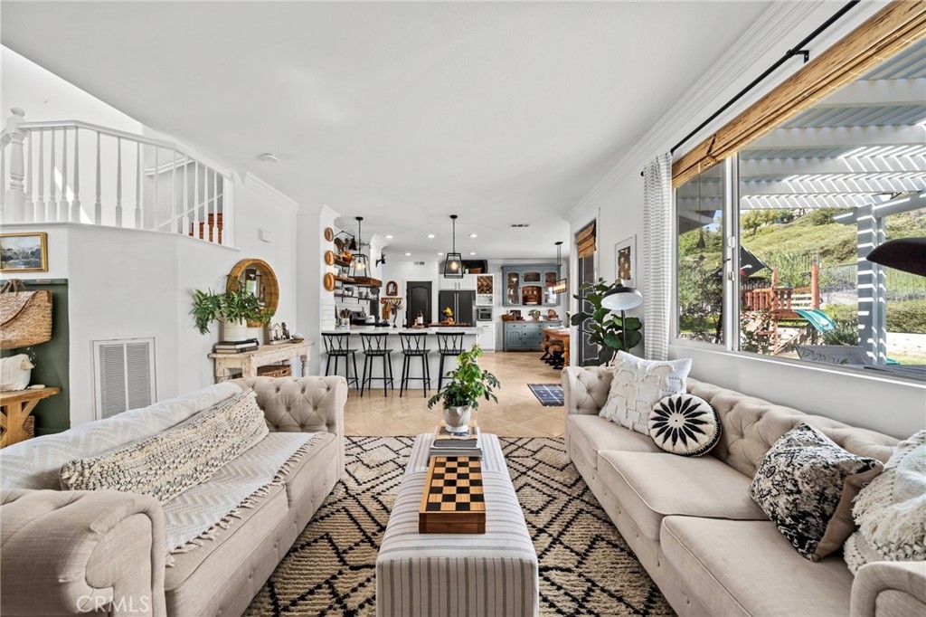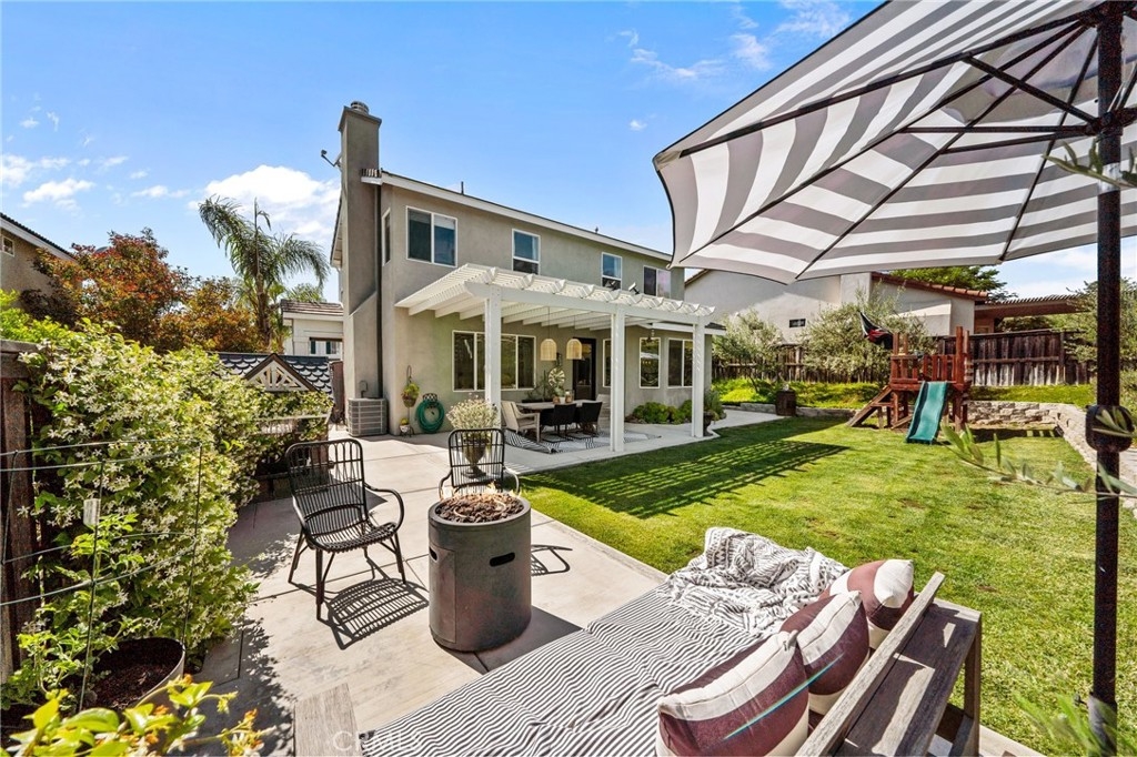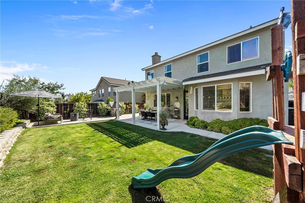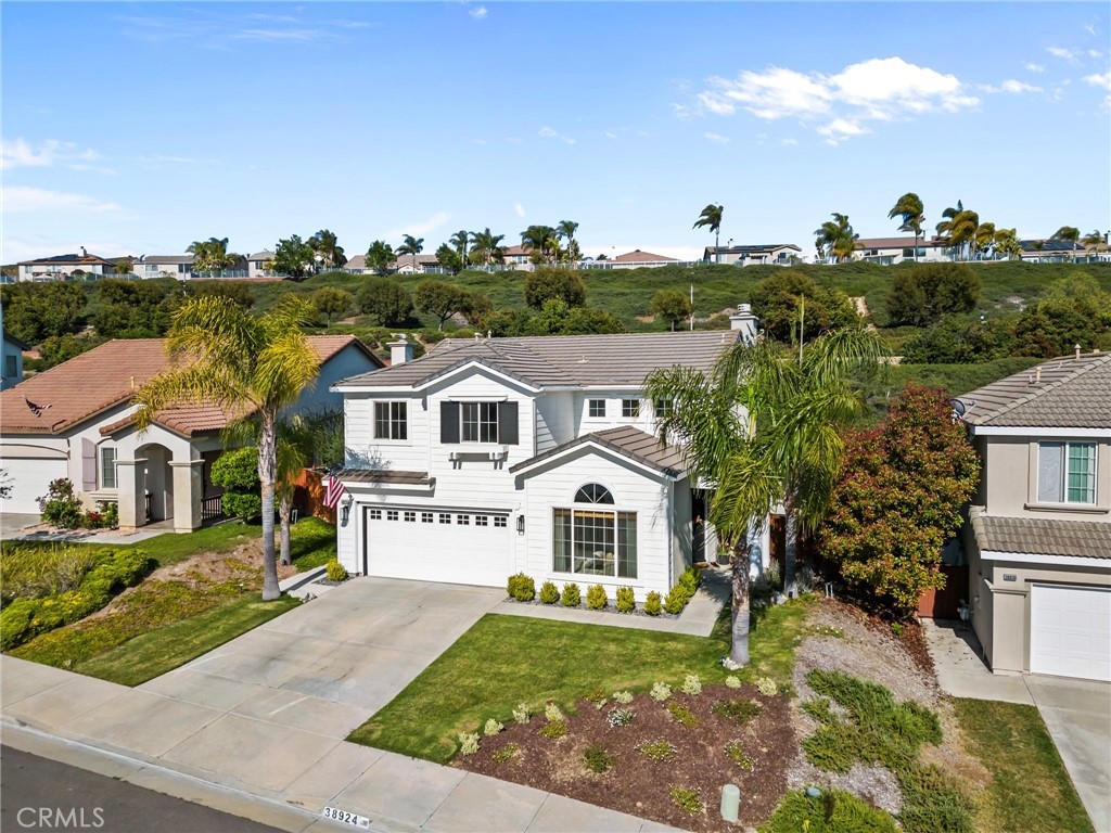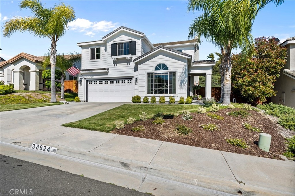 You have Arrived! HIGHLY UPGRADED TWO-STORY CENTRAL PARK HOME, LOW TAXES, LOW HOA, TEMECULA SCHOOLS. Nestled in the heart of the highly sought-after Central Park community. Enjoy modern living in this charming and elegantly upgraded home, featuring high-end finishes and thoughtful touches throughout. As you step through the front door, you'll be greeted by an open foyer with travertine floors and crown molding. The living area lets in tons of natural light, creating a warm and inviting atmosphere that's perfect for both relaxing and entertaining. The kitchen is a chef's dream, complete with modern stainless steel appliances and quartz countertops. The butcher block island makes preparing meals a breeze while the farmhouse sink makes for easy cleanup. The master suite is a true retreat, featuring a walk-in closet and an attached en-suite room that is an optional fourth bedroom. A cozy gas fireplace awaits in the inviting living room, creating a warm ambiance. Step outside to discover an alumawood slatted patio cover in the backyard, providing a shaded space for outdoor gatherings. A freshly poured patio and retaining wall with complete landscaping in the backyard add to to the convenience and comfort of the backyard. There are no rear neighbors due to the home backing up to one of the many open green spaces throughout the community. Additionally, the entire interior and exterior has been freshly painted, adding to the curb appeal. The garage features lots of storage with overhead storage racks enhancing the overall functionality. A newly installed AC unit, added within the last year, keeps the home nice and cool. Central Park offers tons of amenities for only $49 per month including: a community clubhouse available for use of private events, pool/hot tub/ kids wading pool, walking trails, parks with sitting areas, and more. The county maintained parks around the community and next to the pool/clubhouse include playgrounds, open grass fields, tennis court, pickleball courts, and a basketball court. You'll be just minutes away from local shopping centers, Temecula Wine Country, Old Town, restaurants, and top-rated schools. LOW HOA! LOW TAXES! Don't miss out on this incredible opportunity - schedule your private tour today!