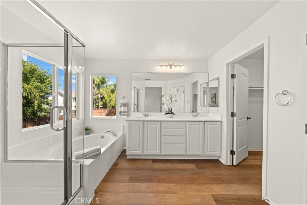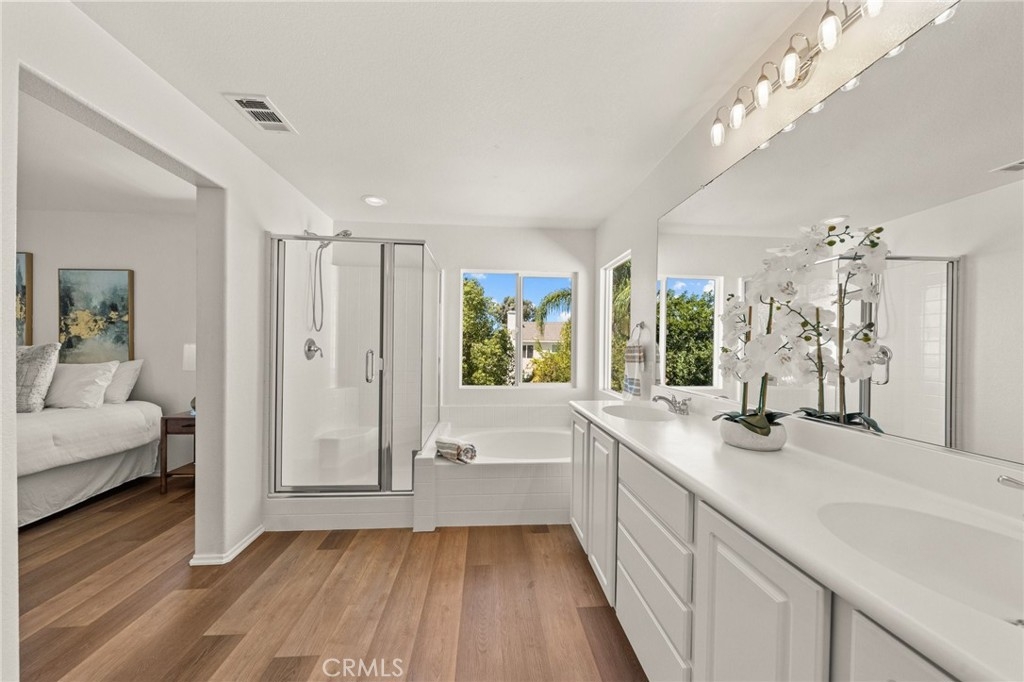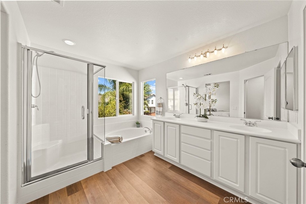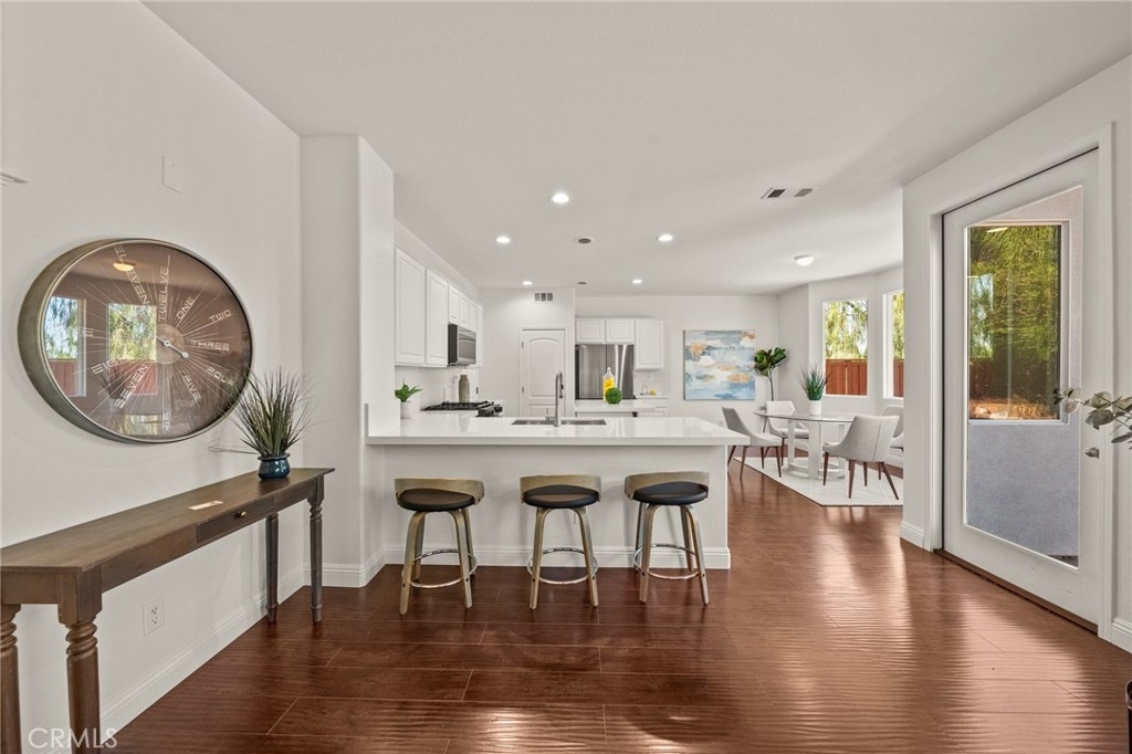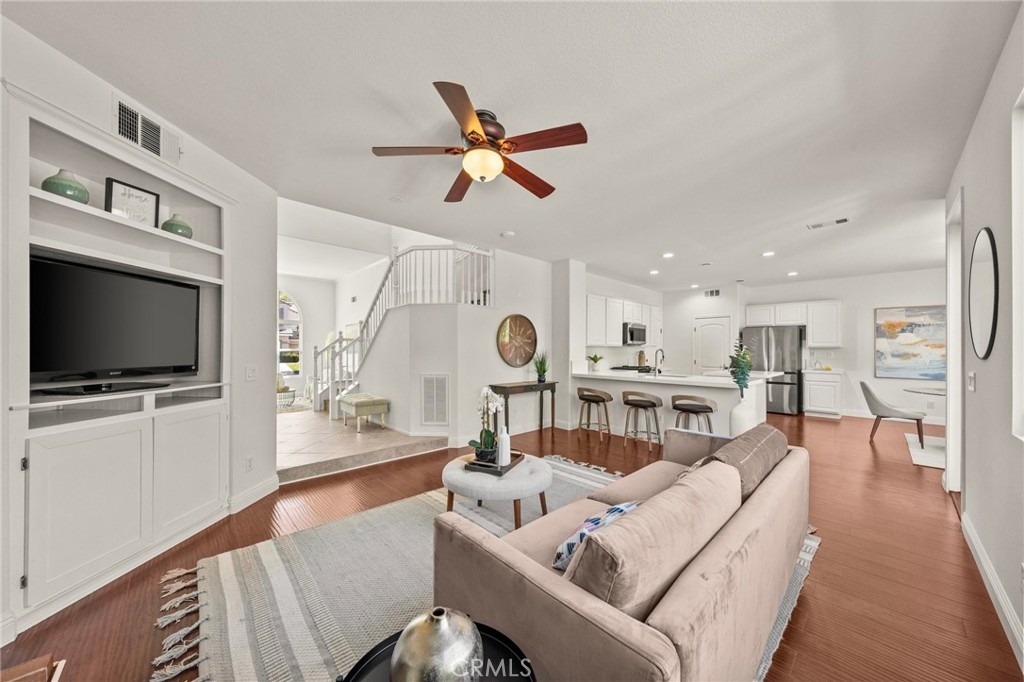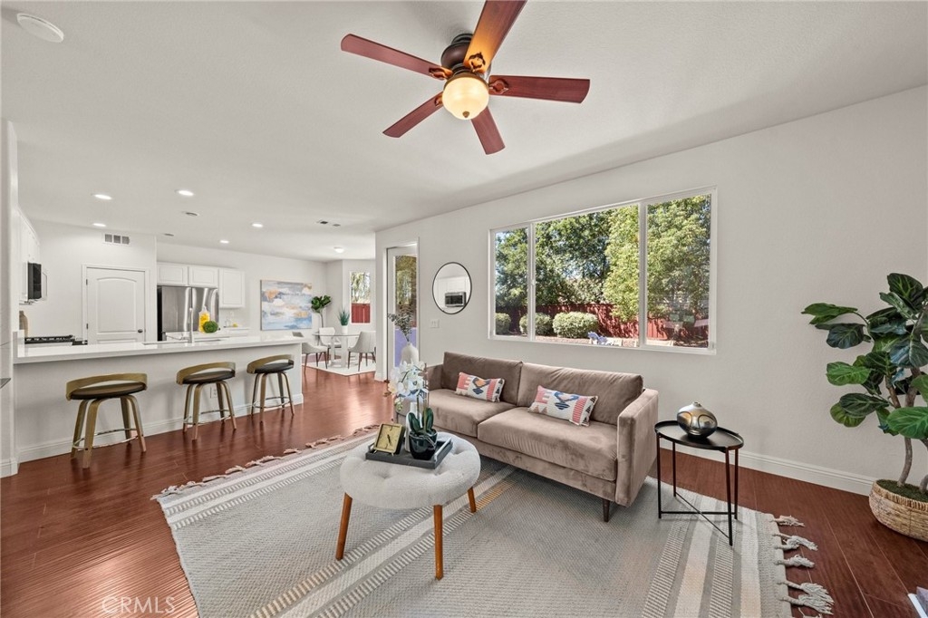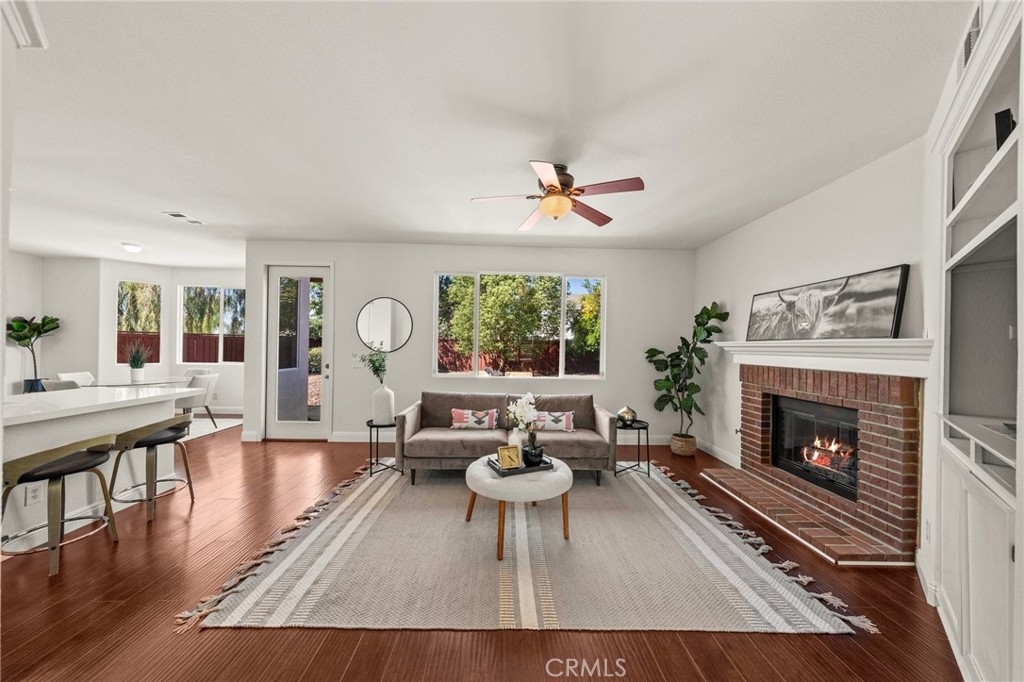 You have Arrived! HIGHLY UPGRADED TWO-STORY CENTRAL PARK HOME, LOW TAXES, LOW HOA, TEMECULA SCHOOLS. Nestled in the heart of the highly sought-after Central Park community. Enjoy modern living in this charming and upgraded home, featuring high-end finishes and thoughtful touches throughout. As you step through the front door, you'll be greeted by an open foyer with travertine and hard wood looking laminate floors. The living area lets in tons of natural light, creating a warm and inviting atmosphere that's perfect for both relaxing and entertaining. The kitchen is complely remodeled with modern stainless steel appliances and quartz countertops. A cozy gas fireplace awaits in the inviting living room, creating a warm ambiance. The master bathroom is freshly remodeled as well with a frameless glass shower. Step outside to discover an incredible view of the surrounding mountains and plateau. Additionally, the entire interior and exterior has been repainted, adding to the curb appeal outside and a fresh clean look inside. A brand new AC unit, replaced within the last year, keeps the home nice and cool throughout the hot summer days. Central Park offers tons of amenities for only $49 per month including: a community clubhouse available for use of private events, pool/hot tub/ kids wading pool, walking trails, parks with sitting areas, and more. The county maintained parks around the community and next to the pool/clubhouse include playgrounds, open grass fields, tennis court, pickleball courts, and a basketball court. You'll be just minutes away from local shopping centers, Temecula Wine Country, Old Town, restaurants, and top-rated schools. LOW HOA! LOW TAXES! Don't miss out on this incredible opportunity - schedule your private tour today!